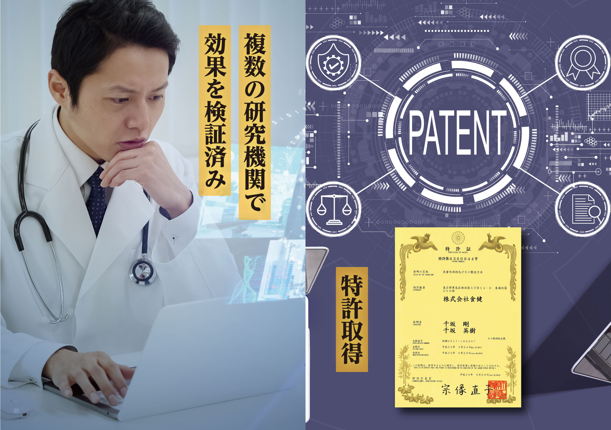 『素肌彩クリーム』が身体にもたらす、こうした恩恵の数々は、大学病院を含む複数の研究機関で科学的な検証が行なわれており、それらの検証結果を踏まえて特許も認められています。