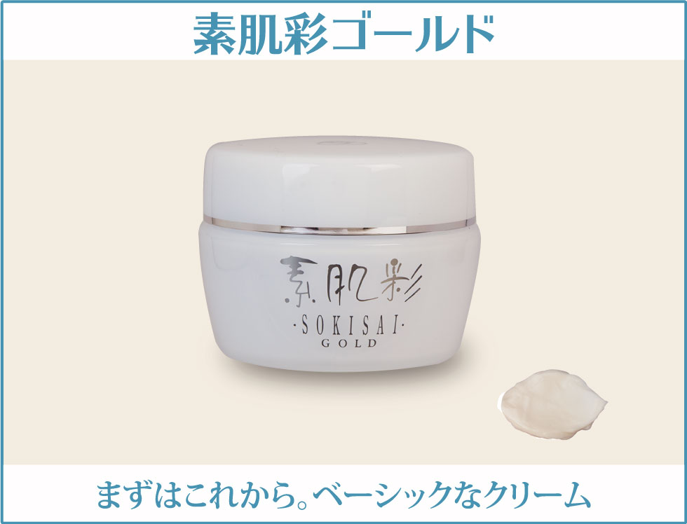素肌彩ゴールド<原材料>水、スクワラン、ベヘニルアルコール、BG、ステアリン酸、エチルヘキサン酸セチル、パルミチン酸セチル、ステアリン酸グリセリル、グリセリン、1,2-ヘキサンジオール、セテス-6、ミツロウ、ポリソルベート65、アロエベラ葉エキス、岩石抽出物、マツ種子油、馬油、シソ葉エキス、オウゴン根エキス、ムラサキ根エキス、アラントイン、プロポリスエキス、アルギニン、トコフェロール、グリチルレチン酸ステアリル、ジメチコン、エチルヘキシルグリセリン、カプリル酸グリセリル、エタノール