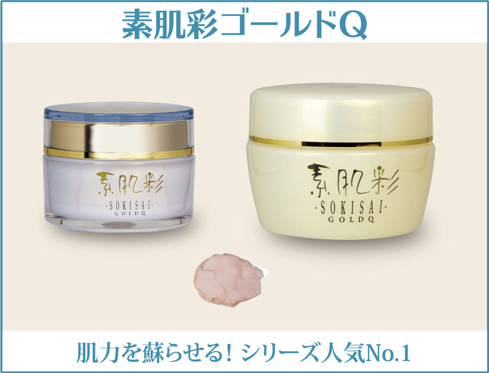 素肌彩ゴールドQ<原材料>水、スクワラン、BG、ステアリン酸、ベヘニルアルコール、オリーブ果実油、ホホバ種子油、パルミチン酸セチル、1,2-ヘキサンジオール、セテス-6、ステアリン酸グリセリル、ミツロウ、ポリソルベート65、岩石抽出物、ヒアルロン酸Na、セラミドNP、シロキクラゲ多糖体、グリチルレチン酸ステアリル、アルガニアスピノサ核油、マツ種子油、ノバラ油、アラントイン、アルギニン、海塩、白金、シアノコバラミン、ポリグルタミン酸、カンゾウ根エキス、ダイズ種子エキス、加水分解酵母エキス、チャ葉エキス、オタネニンジン根エキス、プロポリスエキス、アロエベラ葉エキス、ルイボスエキス、ハス胚芽エキス、ゲットウ葉エキス、アルニカ花エキス、キュウリ果実エキス、ゼニアオイ花エキス、パリエタリアエキス、セイヨウキズタ葉/茎エキス、セイヨウニワトコ花エキス、ポリソルベート80、トコフェロール、エタノール、ジメチコン、エチルヘキシルグリセリン、カプリル酸グリセリル